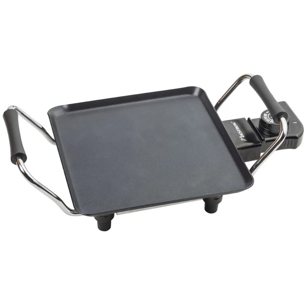 Die Elektro Plancha Grillplatte ABP600 von Bestron ist eine hochwertige Backplatte mit Antihaftbeschichtung (Grillfläche 21 x 21cm), sie eignet sich besonders für z.B. Fleisch, Fisch, Gemüse oder Kartoffeln. Zum Grillen ist kein Öl oder Fett nötig. Die Plancha kann im Innenbereich und wettergeschützt im Freien verwendet werden. Der abnehmbare einstellbare Temperaturschalter ist mit einer Kontrollleuchte ausgestattet. Die leicht zu reinigende Plancha ist außerdem mit wärmeisolierten Griffen und Antirutschfüßen versehen.Art.-Nr.: 1535979