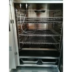 | Bedienung | Funktionen | Touchscreen, USB-Anschluss zum Einlesen von Rezepten, Ofentemperatur (wird automatisch gehalten), Garzeit (nach Ablauf der Zeit schaltet sich das Heizelement ab), Räucherzeit (unabhängig von der Garzeit) | |