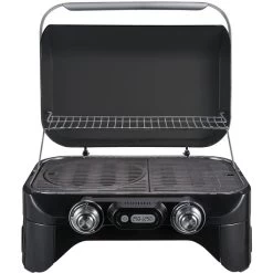 Der Campingaz Tischgrill Attitude 2100 EX Plus verbindet eleganten urbanen Style mit professionellem Grillen, und hat dabei kompakte und transportable Maße. Der Grill bietet mit der Even Heat Technologie und dem langlebigen Blue Flame Brennersystem eine gleichmäßige Wärmeverteilung über die gesamte Grillfläche. Die einzigartige digitale Temperaturanzeige misst die Wärme für jede Seite der Grillfläche und ermöglicht dadurch ein perfektes, präzises Wärmemanagement. Das Display zeigt die Temperatur in Schritten von 5°C an. Mit der intuitiven One-Touch InstaStart-Zündung braucht man den Knopf nur drücken und drehen, um die Brenner ganz einfach zu entzünden. Dank des patentierten, elektronischen Zündsystems kann der Attitude 2100 EX Plus bequem und sicher gestartet werden. Die beleuchteten Kontrollknöpfe visualisieren dabei den Gasfluss zum jeweiligen Brenner. Unter dem eleganten Deckel verbirgt sich ein geteilter Grillrost mit Culinary Modular Einsatz, der vielseitige Grillmöglichkeiten bietet. Die verschiedenen Einsätze für das Culinary Modular System bringen das urbane Grillen auf das nächste Level, indem man einfach den inneren Ring des gusseisernen Grillrostes herausnimmt und ein Culinary Modular Zubehörteil, wie z.B. den Pizzastein, oder die separat erhältlichen Zubehöre wie Bratpfanne, Plancha, Paellapfanne oder Hähnchenbräter hineinlegt. Mit dem Culinary Modular Zubehör kann man seiner Kreativität von Pizza bis Paella frei entfalten. Mit dem patentierten Campingaz InstaClean System war die Reinigung nach dem Grillen noch nie so einfach. Der Attitude 2100 EX Plus verfügt über eine frontseitige Fettauffangschale und ermöglicht es, die verchromten, spülmaschinengeeigneten Teile in weniger als 60 Sekunden schnell, einfach und sauber zu entnehmen.Art.-Nr.: 1603312