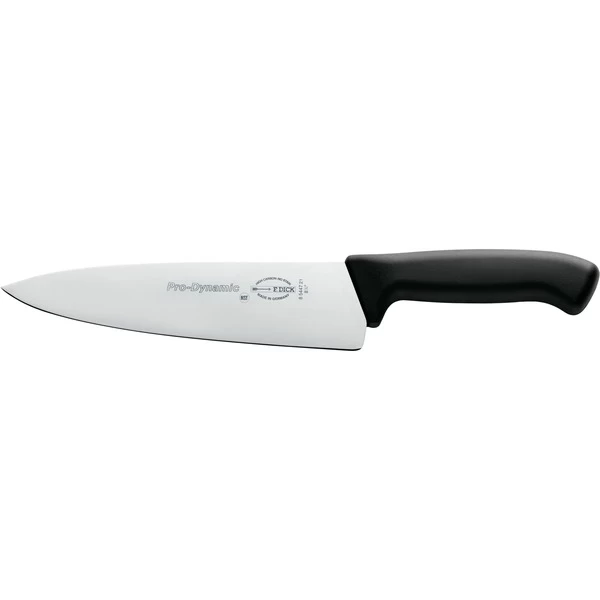 Das Kochmesser mit geschwungener Klinge ist der Klassiker und das Herzstück der professionellen Küche, der wichtigste Küchenhelfer für den vielseitigen Einsatz. Das ProDynamic Kochmesser 85447212 von DICK mit seiner spitzen und beidseitig geschliffenen Klinge eignet sich zum Schneiden von Gemüse, zum Zerteilen und Zerlegen von Fleisch und Fisch. Die geschwungene Klingenform erleichtert den sogenannten Wiegeschnitt, ideal besonders für Kräuter und Zwiebeln. Die Messer der Serie ProDynamic finden in der Gastronomie, in Großküchen und im Thekenbereich ihren Einsatz. Sie zeichnen sich durch ein geringes Gewicht aus und ermöglichen ein längeres ermüdungsfreies Arbeiten. Der ergonomisch geformte Vollkunststoffgriff und die Qualitätsklinge aus Edelstahl ergeben ein modernes Messer in klarem Design.Art.-Nr.: 1707844