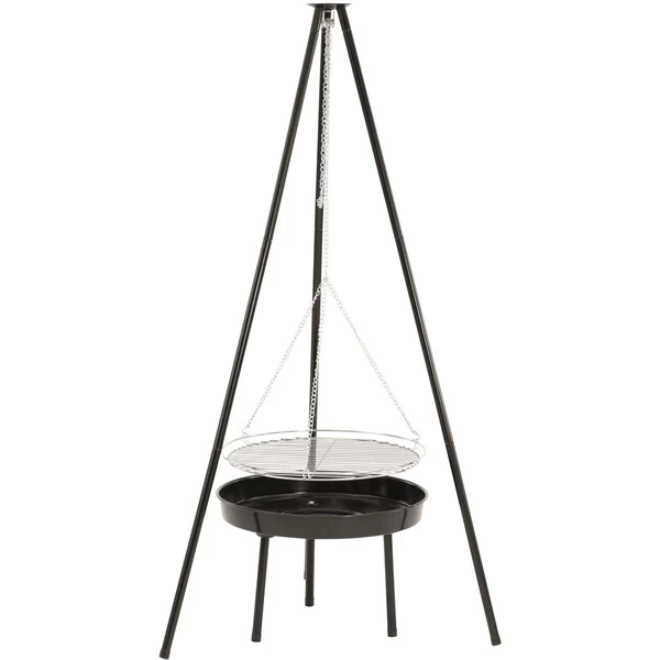 Der einfach aufzustellende Schwenkgrill Lagerfeuer-Dreibein Deluxe von Easy Camp eignet sich als mobiler Holzkohlegrill für unterwegs und bietet einen verchromten Grillrost mit 50cm Durchmesser. Die Feuerschüssel für Holzohle oder Grill-Briketts ist pflegeleicht, und mit einem Kettenzug kann der Grillrost in der Höhe perfekt an die Hitze in der Feuerschale angepasst werden.Art.-Nr.: 1486480