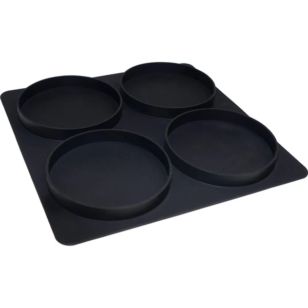 Die BurgerPresse No.1, eine 4-fach Silikon Hamburgerpresse von Moesta-BBQ, ist der ideale Helfer für alle Burger-Fans. Sie eignet sich zum Pressen vom 4 perfekten Burgerpatties in einem Schritt. Dabei ist sie einfach in der Handhabung und leicht zu reinigen. Das Silikon ist weich und flexibel, daher lassen sich die Patties ganz einfach mit kreisenden Handbewegungen auf dem Deckel formen. Fantastisch an der der Moesta-BBQ Burgerpresse ist, dass man gleichzeitig unterschiedlich schwere Patties machen kann, z.B. ein 170g leichtes Patty und einen großen Burger mit 250g Patty. Die BurgerPresse No.1 fertigt eine kleine Vertiefung im Patty, damit er sich auf dem Grill nicht verzieht. Die Patties können bedenkenlos in der BurgerPresse eingefroren werden und somit bei Bedarf aufgetaut und gegrillt werden. Beim Entnehmen klebt nichts am Silikon fest.Art.-Nr.: 1516021