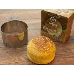 Mit dem BurgerRing XL – der Burger Backform von Moesta-BBQ, gelingt das perfekte Hamburgerbrötchen und die perfekte Form. Der Durchmesser von 11,5cm wurde aus dem Grund gewählt, weil ein Burger-Pattie aus aus der Moesta BurgerPresse 12,5cm misst. Während des Grillens schrumpft das Pattie um 1cm – 1,5cm, so dass Bun und Pattie einen einheitlichen Durchmesser besitzen und den Grundstein für einen tollen Burger legen. Die L Variante dagegen ist abgestimmt auf die etwas kleineren Patties aus den handelsüblichen Burgerpressen. Der BurgerRing ist aus 100% Edelstahl gefertigt. Auf einer Seite prangt das Moesta-BBQ-Logo, auf der anderen Seite der Schriftzug „BurgerRing“. Er ist sauber verarbeitet und ohne scharfe Kanten. Der Abwasch nach dem Backen gestaltet sich sehr einfach. Man sollte die BurgerRinge nach Benutzung kurz im Wasser einweichen, dann lassen sich die Backreste ganz einfach von den Ringen abwischen. Noch einfacher geht es in der Spülmaschine.Art.-Nr.: 1516031
