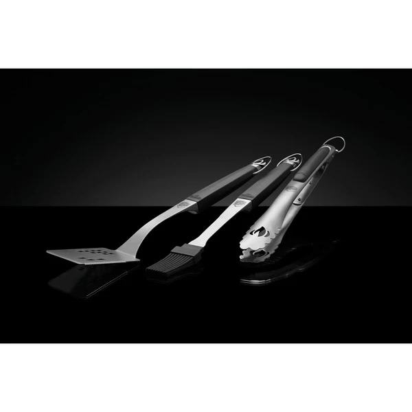 Das 3-teilige President’s Limited Edition Grillbesteck 70036 von Napoleon enthält Pfannenwender, Grillpinsel und Zange in hochwertigem Design, aus Edelstahl mit schwarzen Griffen. Der Grillpinsel ist mit Silikon-Borsten ausgestattet. Der Wender eignet sich ideal für Steaks und anderes größeres Grillgut. Er hat einen Wellenschliff und eine scharfe Kante. Die Grillzange mit dem praktischen Schließmechanismus ist ideal zum Hantieren mit feinem, zartem Grillgut. Alle drei Teile des President’s Limited Edition Grillbestecks haben einen großen Haken zum Aufhängen.Art.-Nr.: 1496494
