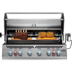 Der 44″ Einbau-Gasgrill der Serie 700 mit zwei Infrarot-Heckbrennern bietet die hochwertige Grillqualität, die man von Napoleon Gasgrills gewohnt ist und erwartet, und fĂĽgt sich dabei nahtlos in die ideale Outdoor-KĂĽche ein. Die rostfreie Konstruktion ĂĽberzeugt mit stilvoller Langlebigkeit und beispielloser Leistung. Die dicken 9mm WAVE-Grillroste aus Edelstahl sind praktisch wartungsfrei und erzeugen die typischen, köstlichen Grillstreifen. Die präzise Temperaturregelung und das ACCU-PROBE-Thermometer sorgen dafĂĽr, dass man mĂĽhelos scharf anbraten, räuchern, braten, grillen oder backen kann. Der Flammenstrahl des JETFIRE ZĂĽndsystems zĂĽndet die Hauptbrenner schnell, einfach und zuverlässig. Die NIGHTLIGHT-Regler leuchten in einem herrlichen Blau, das zu Rot wechselt, wenn die Brenner in Betrieb sind. Der 44″ Einbau-Gasgrill der Serie 700 mit integrierter Verkleidung und längerer elektrischer Verkabelung wurde speziell fĂĽr eine einfache Installation ohne Design- und Funktionseinschränkungen entwickelt.Art.-Nr.: 1815219
