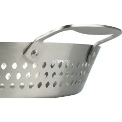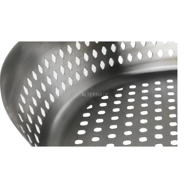 Mit dem Napoleon Wok-Gemüsekorb aus Edelstahl bereitet man das ideale Grillgemüse zu. Dank der vollständig gelöcherten Boden- und Seitenflächen wird das Grillgut tatsächlich gegrillt und nicht im eigenen Saft gegart, das schafft Grillaroma. Seitliche Griffe machen den Wok-Korb besonders handlich. So kann er am Grill beliebig variiert und das fertige Gericht sogar am Tisch serviert werden. Der Grill Wok-Korb ist aus hochwertigem Edelstahl gefertigt und für die Spülmaschine geeignet.Art.-Nr.: 1591722