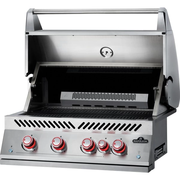 Der 32″ Einbau-Gasgrill der Serie 700 mit Infrarot-Heckbrenner bietet die hochwertige Grillqualität, die man von Napoleon Gasgrills gewohnt ist und erwartet, und fĂĽgt sich dabei nahtlos in die ideale Outdoor-KĂĽche ein. Die rostfreie Konstruktion ĂĽberzeugt mit stilvoller Langlebigkeit und beispielloser Leistung. Die dicken 9,5mm WAVE-Grillroste aus Edelstahl sind praktisch wartungsfrei und erzeugen die typischen, köstlichen Grillstreifen. Die präzise Temperaturregelung und das ACCU-PROBE-Thermometer sorgen dafĂĽr, dass man mĂĽhelos scharf anbraten, räuchern, braten, grillen oder backen kann. Der Flammenstrahl des JETFIRE ZĂĽndsystems zĂĽndet die Hauptbrenner schnell, einfach und zuverlässig. Die NIGHTLIGHT-Regler leuchten in einem herrlichen Blau, das zu Rot wechselt, wenn die Brenner in Betrieb sind. Der 32″ Einbau-Gasgrill der Serie 700 mit integrierter Verkleidung und längerer elektrischer Verkabelung wurde speziell fĂĽr eine einfache Installation ohne Design- und Funktionseinschränkungen entwickelt.Art.-Nr.: 1680009