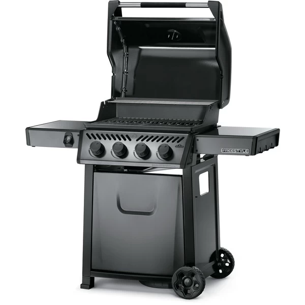 Der Napoleon Freestyle 425 Graphit ist ein kompakter Gasgrill mit erstklassigen Funktionen und unschlagbarem Preis-Leistungsverhältnis. Der Flammenstrahl des JETFIRE Zündsystems zündet die Hauptbrenner schnell, einfach und zuverlässig. Die Iconic Wave-Grillroste aus Gusseisen und die emaillierten Flammenschutzbleche ermöglichen eine gleichmäßige Hitze-Verteilung und ein perfektes Anbraten. Die Porzellanbeschichtung schützt sie dabei vor Rost. Der langlebige Feuerkasten aus Aluminiumguss reflektiert die Hitze des Grills und erzeugt so eine konvektive, backofenähnliche Umgebung und hervorragende Grillergebnisse. Die Temperatur der drei Edelstahlbrenner kann mit den ergonomischen Bedienknöpfen präzise gesteuert und über das integrierte Thermometer einfach kontrolliert werden. Die klassische Edelstahlblende und der Carbonfarbton verleihen dem leicht ablesbaren Thermometer einen stylischen Retrolook. Die schöne Graphit-Porzellanbeschichtung schützt den Deckel vor Abnutzung, Wettereinflüssen und Fingerabdrücken. Der Soft-Touch-Griff mit weicher Oberfläche ist wärmeabweisend und sorgt beim Öffnen und Schließen der Grillhaube für eine angenehme Griffigkeit. Auch die Reinigung des Gasgrills Freestyle 425 Graphit fällt anschließend dank der seitlich zu entnehmenden Fettauffangschale ganz leicht. Mit den beiden robusten Rollen kann der Grill leicht an jeden gewünschten Ort geschoben werden, und der geschlossene Unterschrank schützt die Gasflasche und den Wagen vor Umwelteinflüssen. Mit seinen einfach ausklappbarer Seitenablagen mit Aufhängern für Grillbesteck und einem Flaschenöffner ist der Freestyle für jede Gartenparty umfassend ausgestattet.Art.-Nr.: 1680035