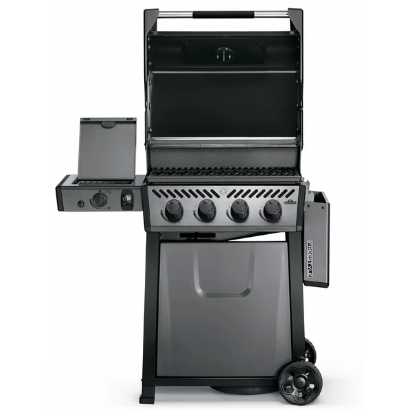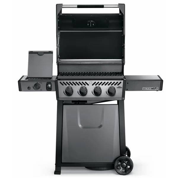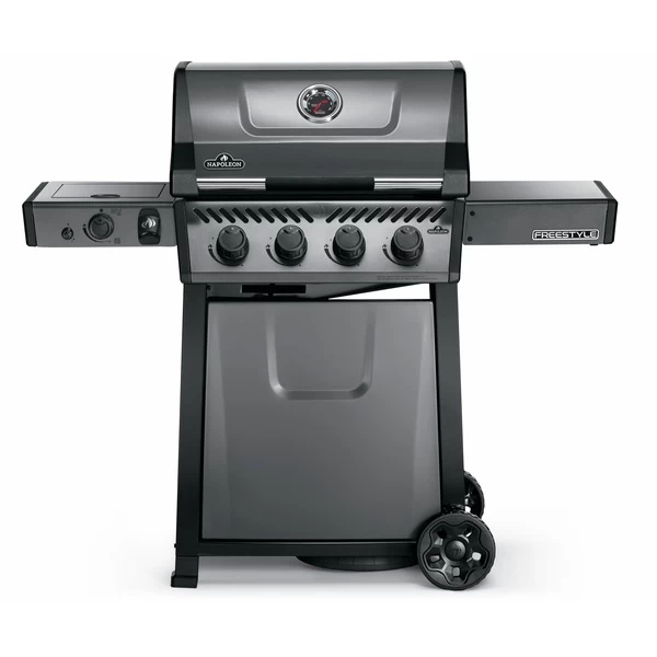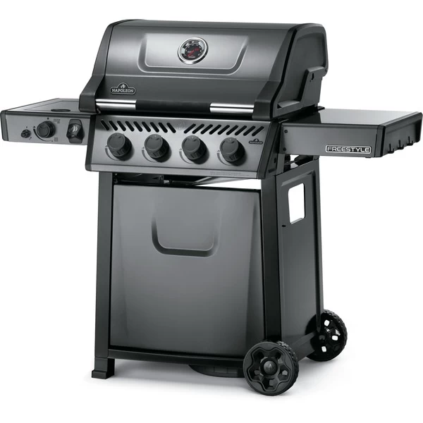 Der Napoleon Freestyle 425 SIB Graphit ist ein kompakter Gasgrill mit erstklassigen Funktionen und unschlagbarem Preis-Leistungsverhältnis. Der Flammenstrahl des JETFIRE Zündsystems zündet die Hauptbrenner schnell, einfach und zuverlässig. Die Iconic Wave-Grillroste aus Gusseisen und die emaillierten Flammenschutzbleche ermöglichen eine gleichmäßige Hitze-Verteilung und ein perfektes Anbraten. Die Porzellanbeschichtung schützt sie dabei vor Rost. Der langlebige Feuerkasten aus Aluminiumguss reflektiert die Hitze des Grills und erzeugt so eine konvektive, backofenähnliche Umgebung und hervorragende Grillergebnisse. Die Temperatur der drei Edelstahlbrenner kann mit den ergonomischen Bedienknöpfen präzise gesteuert und über das integrierte Thermometer einfach kontrolliert werden. Die klassische Edelstahlblende und der Carbonfarbton verleihen dem leicht ablesbaren Thermometer einen stylischen Retrolook. Bei dem Freestyle SIB-Modell verbirgt sich in der linken Seitenablage außerdem der legendäre SIZZLE ZONE Infrarotbrenner. Dieser Hochtemperatur-Brenner verwöhnt das Grillgut bei bis zu 800°C mit köstlichen Röstaromen für Perfektion wie im Steakhaus, und ist natürlich auch perfekt für Soßen, Beilagen, Wok- oder Pfannengerichte geeignet. Die schöne Graphit-Porzellanbeschichtung schützt den Deckel vor Abnutzung, Wettereinflüssen und Fingerabdrücken. Der Soft-Touch-Griff mit weicher Oberfläche ist wärmeabweisend und sorgt beim Öffnen und Schließen der Grillhaube für eine angenehme Griffigkeit. Auch die Reinigung des Gasgrills Freestyle 425 SIB Graphit fällt anschließend dank der seitlich zu entnehmenden Fettauffangschale ganz leicht. Mit den beiden robusten Rollen kann der Grill leicht an jeden gewünschten Ort geschoben werden, und der geschlossene Unterschrank schützt die Gasflasche und den Wagen vor Umwelteinflüssen. Mit einer festen und einer einfach ausklappbaren Seitenablagen mit Aufhängern für Grillbesteck sowie einem Flaschenöffner ist der Freestyle für jede Gartenparty umfassend ausgestattet.Art.-Nr.: 1680029