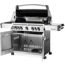 Der Napoleon Prestige 665 Edelstahl vereint unter seiner schicken und platzsparenden LIFT EASE Rollhaube alles, was sich ein Grillmeister wünschen kann. Mit 5 Hauptbrennern, einem Infrarot-Heckbrenner für Gerichte vom Drehspieß und dem Infrarot SIZZLE ZONE Seitenbrenner für perfekte Steaks ermöglicht er vielfältigste Formen der Zubereitung. Auf der großzügigen Hauptgrillfläche plus Warmhalterost lassen sich Familie, Freunde, Nachbarn oder der ganze Fußballclub verköstigen. Praktisch und clever sind auch die Seitenablagen konstruiert: Links verbirgt sich die Sizzle Zone als Seitenbrenner. Dieser extra heiße Brenner sorgt für erstklassige Röstaromen und ein unverwechselbares Branding. Die Sizzle Zone kann natürlich auch als Kochfeld benutzt werden, in Verbindung z.B. mit dem Napoleon Edelstahl Wok für asiatische Gerichte. Die großzügigen Seitenablagen bieten außerdem extra Zubereitungsfläche sowie praktische Gewürz- oder Getränkehalter. Dank den integrierten Besteckhaken ist das Grillbesteck immer gut aufgeräumt. Und wenn das Grillvergnügen mal etwas länger dauert, ermöglichen die neuen ergonomischen SAFETY GLOW Drehregler mit integrierter Hintergrundbeleuchtung und Farbwechsel (ändert sich von blau auf rot, wenn Gas strömt) auch bei Dunkelheit eine präzise Bedienung. Der Prestige 665 ist jetzt mit einem Bewegungssensor ausgestattet, so dass die SAFETY GLOW Regler bei Bewegung bzw. Annäherung zum Grill aufleuchten. Die Napoleon WAVE Grillroste sorgen für eine gleichmäßigere Hitzeverteilung und halten auch kleineres Grillgut sicher auf dem Rost. Die Edelstahl-Flammenschutzeinsätze bilden eine extra Oberfläche und werden so zu Aromaschienen, die dem Grillgut eine besonders aromatische Grillnote verleihen. Diese Aromaschienen sind dank des geradlinigen und durchdachten Designs besonders einfach zu reinigen. Der Infrarot-Heckbrenner eignet sich hervorragend zum Grillen großer Bratenstücke und ist natürlich auch ideal für Drehspieß-Gerichte geeignet.Art.-Nr.: 1591476