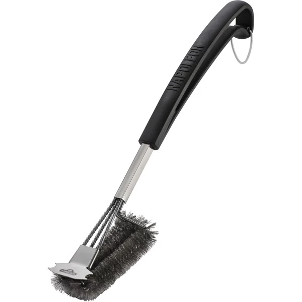 Die Grillbürste 62063 von Napoleon ist mit drei vertikalen Reihen Edelstahlborsten und einem Grillrostschaber ausgestattet. Sie eignet sich für alle Grillroste aus Edelstahl oder Gusseisen. Die vertikalen Bürstenreihen säubern die Rostzwischenräume schnell und einfach. Mit dem breiten Grillschaber lassen sich auch besonders starke Verunreinigungen entfernen. Der gebogene Griff sorgt für mehr Stabilität und zusätzliche Hebelwirkung beim Reinigen des Grillrostes. Dank der praktischen Aufhängung kann die Grillbürste immer in Reichweite aufbewahrt werden.Art.-Nr.: 1680385