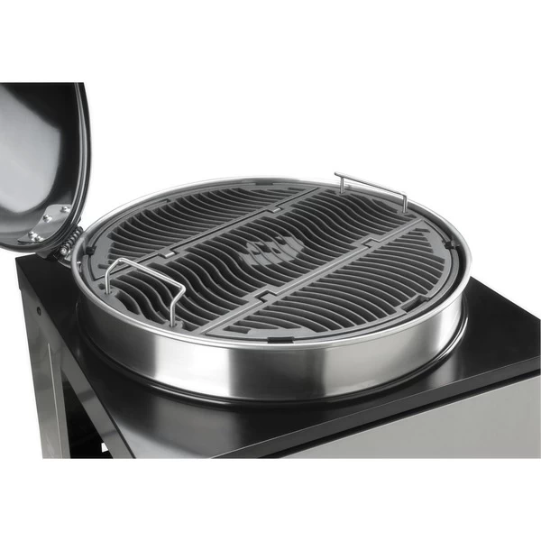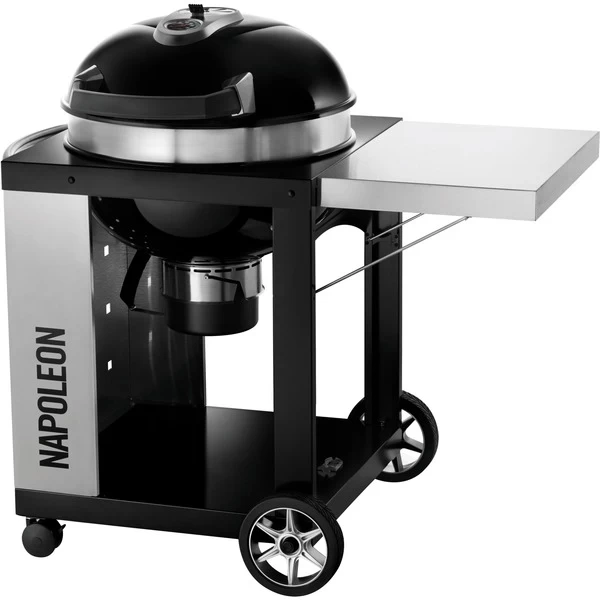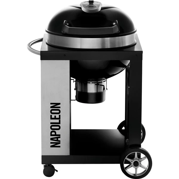Die neue Version des PRO22K-CART ist mit einem optimierten Lüftungssystem ausgestattet. Mit dem PRO22K-CART-2 hat Napoleon einen Holzkohlegrill entwickelt, der jeden Grillfan begeistert. Das klassische Design und das geradlinige Wagen-Design wird durch den schwarzen Look des Kugelgrills und durch wenige Akzente aus Edelstahl unterstrichen. Wie bei den Gasgrills setzt Napoleon auch beim Holzkohlegrill PRO22K darauf, dass sich Qualität, Hochwertigkeit und Ausstattung auszahlen. Die Garkammer, bestehend aus Kessel und Deckel, ist mit extra dickem Platinum-Porzellan beschichtet, was den Grill sehr widerstandsfähig macht. Zur Ausstattung des PRO22K gehören das ACCU-PROBE™-Thermometer im Deckel und ein Grillrost aus Gusseisen. Für ein leichteres Handling klappbar, lässt es ein herrliches Branding entstehen. Der dreifach höhenverstellbare, klappbare WAVE™ Gussgrillrost (Ø 57 cm) sorgt für eine gleichmäßig verteilte und lang anhaltende Hitze. Dank des drehbaren Deckels mit Eckscharnier kann der Grillmeister sicher über der Grillfläche hantieren. Ein großer Aschebehälter aus Stahl und der robuste Kohlerost sind weitere Annehmlichkeiten.Art.-Nr.: 1404247