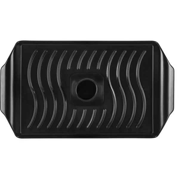 Die Keramik-Grillplatte und Hähnchenhalter-Set für Bierdosen-Hähnchen ist mit Rändern im Iconic WAVE-Design und einem abnehmbaren Hähnchensitz ausgestattet. Die Platte mit Antihaft-Keramikbeschichtung eignet sich z.B zum Zubereiten eines leckeren Bratens oder zum Rösten und Backen von Gemüse. Befestigt man den Röstzylinder, kann man darauf ein Brathähnchen oder eine Pute mit Bier, Brühe oder Saft grillen. Alle Teile des Sets sind spülmaschinenfest, so wird die Reinigung kinderleicht. Die Keramik-Grillplatte ist mit 43cm x 25cm groß genug für ein Hähnchen mit einem Gewicht von ca. einem bis drei Kilogramm.Art.-Nr.: 1680452