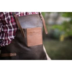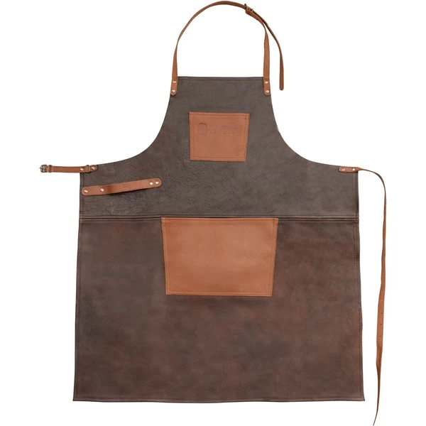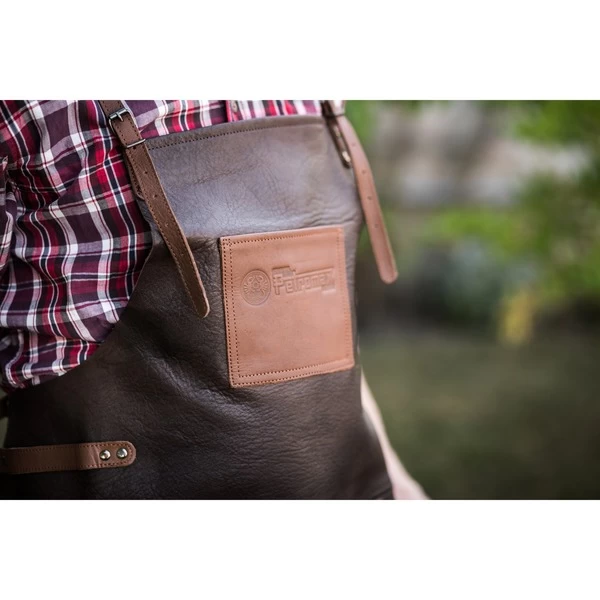 Ob für den Freiluftgrillplatz oder die Draußen-Feuerstelle: die Büffelleder-Schürze ist der optimale Begleiter, um sich selbst und die Kleidung vor Schmutz und Fettspritzern zu schützen. Zudem bietet sie einen weichen Sitz sowie optimale Strapazierfähigkeit. Durch die verstellbare Nackenschlaufe und das Taillenband ist bei der Büffelleder-Schürze Flexibilität und Anpassbarkeit sicher. Verstärkte Nähte, genietete Schlaufen und Bänder bieten Langlebigkeit und höchste Qualität. Denn aufgrund der durchdacht platzierten Brust- und Bauchtasche sowie dem seitlich angebrachten Halteriemen finden nun das Handtuch, Grillbesteck und Kochutensilien ihren angestammten Platz direkt an der Seite. Durch schonende Gerbung und Färbung des Materials wird die natürliche Vollnarbung des Büffelleders beibehalten und gibt der Schürze von Beginn an eine ursprüngliche und individuelle Patina. Die Kombination von Dunkelbraun mit cognacfarbenen Applikationen verleiht der Büffelleder-Schürze ab-b einen ursprünglichen Charme.Art.-Nr.: 1533314