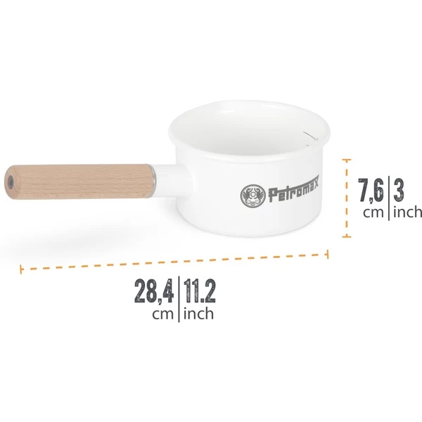 Mit dem weißen Petromax Emaille Stieltopf 0,5 Liter bekommt das Kochen nicht nur einen nostalgischen Charme, sondern geht auch noch leicht von der Hand. Bei Streifzügen durch die Natur oder beim Campen, das robuste Kochgeschirr aus Emaille ist durch geringes Eigengewicht ein idealer Begleiter. Der Holzstiel dient außerdem als ein natürlicher Hitzeschutz und ermöglicht auch das Hantieren über dem Feuer. Dank der Innenskalierung findet man auch unterwegs das richtige Maß für den Topf. Die Oberfläche ist kratzfest und lässt sich mühelos reinigen. Der Emaille Stieltopf erfüllt die Ansprüche an eine robuste, unkomplizierte Handhabung und Pflege in vollem Umfang. Der Petromax Emaille Stieltopf ist in zwei Farben und je zwei Größen erhältlich, für alle Herdarten und für offenes Feuer geeignet.Art.-Nr.: 1825497