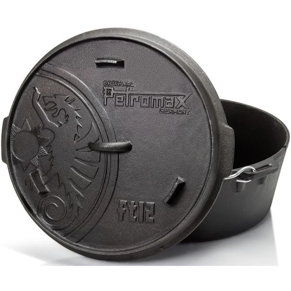Der Feuertopf ft12-t von Petromax eignet sich für 14 – 20 Personen. Die Petromax Feuertöpfe, auch als Dutch Oven bezeichnet, sind ideale Begleiter für Draußen-Aktivitäten wie Reisen, Camping, etc. Mit ihnen garen Speisen, wie z.B. Fleisch und Gemüse, sehr schonend im eigenen Saft über offenem Feuer oder im heimischen Backofen sowie auf allen Herdarten. Der einzigartige Geschmack entsteht durch die konstante Rundumwärme im Topf. Die Deckel der Feuertöpfe können zudem auf Wunsch als Servierplatte oder Pfanne genutzt werden. Dank der vorbehandelten Oberfläche (seasoned finished) ist der robuste Petromax Feuertopf aus Gusseisen sofort verwendbar. Mit den Petromax Feuertöpfen kann man draußen leckeres und gesundes Essen für Familie und Freunde zubereiten.Art.-Nr.: 1532717