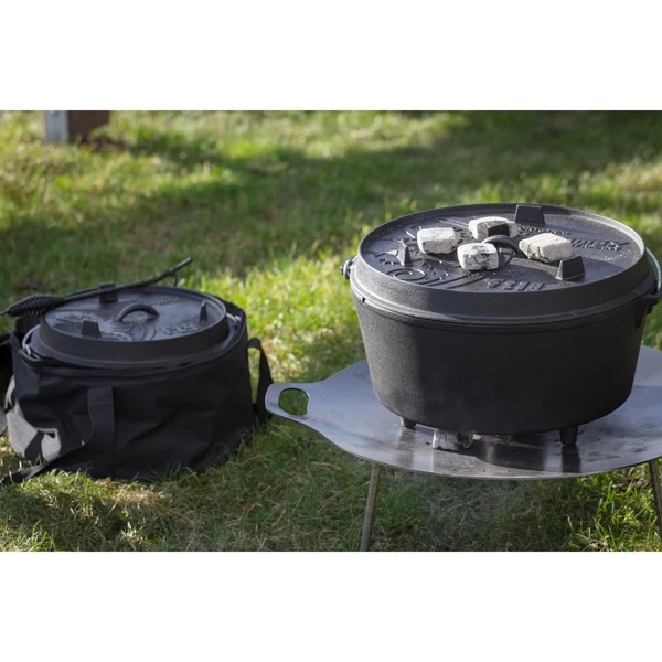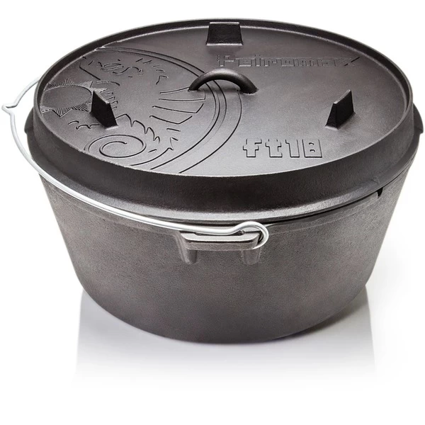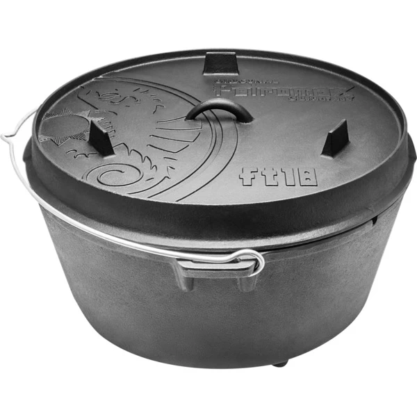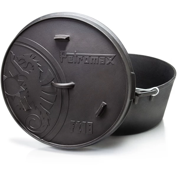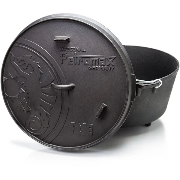 Der Feuertopf ft18 von Petromax eignet sich für mehr als 20 Personen. Die Petromax Feuertöpfe, auch als Dutch Oven bezeichnet, sind ideale Begleiter für Draußen-Aktivitäten wie Reisen, Camping, etc. Mit ihnen garen Speisen, wie z.B. Fleisch und Gemüse, sehr schonend im eigenen Saft über offenem Feuer oder im heimischen Backofen. Der einzigartige Geschmack entsteht durch die konstante Rundumwärme im Topf. Die Deckel der Feuertöpfe können zudem auf Wunsch als Servierplatte oder Pfanne genutzt werden. Dank der vorbehandelten Oberfläche (seasoned finished) ist der robuste Petromax Feuertopf aus Gusseisen sofort verwendbar. Mit den Petromax Feuertöpfen kann man draußen leckeres und gesundes Essen für Familie und Freunde zubereiten.Art.-Nr.: 1532712