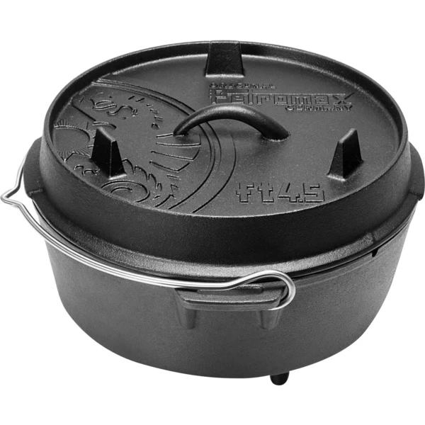 Der Feuertopf ft4.5 von Petromax eignet sich für 2 – 5 Personen. Die Petromax Feuertöpfe, auch als Dutch Oven bezeichnet, sind ideale Begleiter für Draußen-Aktivitäten wie Reisen, Camping, etc. Mit ihnen garen Speisen, wie z.B. Fleisch und Gemüse, sehr schonend im eigenen Saft über offenem Feuer oder im heimischen Backofen. Der einzigartige Geschmack entsteht durch die konstante Rundumwärme im Topf. Die Deckel der Feuertöpfe können zudem auf Wunsch als Servierplatte oder Pfanne genutzt werden. Dank der vorbehandelten Oberfläche (seasoned finished) ist der robuste Petromax Feuertopf aus Gusseisen sofort verwendbar. Mit den Petromax Feuertöpfen kann man draußen leckeres und gesundes Essen für Familie und Freunde zubereiten.Art.-Nr.: 1532706