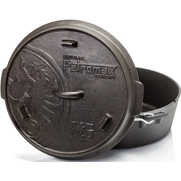 Der Feuertopf ft6-t von Petromax eignet sich für 4 – 8 Personen. Die Petromax Feuertöpfe, auch als Dutch Oven bezeichnet, sind ideale Begleiter für Draußen-Aktivitäten wie Reisen, Camping, etc. Mit ihnen garen Speisen, wie z.B. Fleisch und Gemüse, sehr schonend im eigenen Saft über offenem Feuer oder im heimischen Backofen sowie auf allen Herdarten. Der einzigartige Geschmack entsteht durch die konstante Rundumwärme im Topf. Die Deckel der Feuertöpfe können zudem auf Wunsch als Servierplatte oder Pfanne genutzt werden. Dank der vorbehandelten Oberfläche (seasoned finished) ist der robuste Petromax Feuertopf aus Gusseisen sofort verwendbar. Mit den Petromax Feuertöpfen kann man draußen leckeres und gesundes Essen für Familie und Freunde zubereiten.Art.-Nr.: 1532722