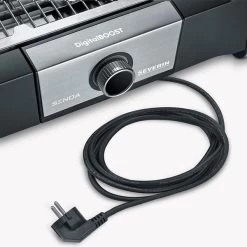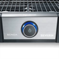 Der SEVERIN Elektro-Tischgrill SENOA DigitalBOOST für drinnen und draußen überzeugt besonders durch Leistung: 3.000 Watt und die innovative Doppelheizungs-Technologie sowie eine speziell entwickelte Reflektorschale ermöglichen eine Spitzentemperatur von von bis zu 500°C direkt am Grillgut. Die leistungsstarke Boost-Zone ist so abgeteilt, dass auch ein ZweiZonen-Grillen auf der ca. 41 x 24cm großen Grillfläche möglich ist. Das digitale OLED Display mit integriertem Timer und Kernthermometer ermöglicht eine exakte Temperatureinstellung für perfekte Ergebnisse. Ein weiteres Highlight ist die Status-LED-Beleuchtung, die zwischen Blau (Standby), Orange (bis 320°C) und Rot (BoostZone, bis 500°C) wechselt und so anzeigt, welcher Temperaturbereich auf dem Grill in Benutzung ist. Ein Sicherheits-Mikroschalter stellt das Heizelement bei Entnahme automatisch ab. Der Edelstahl-Grillrost und viele weitere Teile sind entnehmbar, wodurch eine leichte Reinigung möglich ist.Art.-Nr.: 1862303