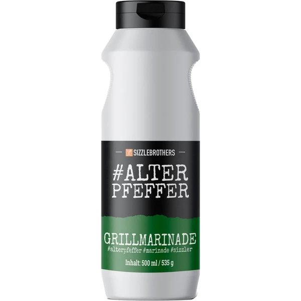 #Alterpfeffer steht für eine einzigartig leckere fermentierte Pfeffermarinade, die Grillspezialitäten eine besondere Note gibt. Ob Fleisch, Fisch, Gemüse oder vegane Speisen, mit dieser Marinade hat man noch mehr Möglichkeiten auf dem Grill. Mit flüssigen Marinaden bringt man noch mehr Geschmack an das Grillgut und es ist eine ideale Alternative für Trockenrubs. Die leckere Marina harmoniert z.B. herrlich mit Ribs, Pulled Pork oder klassischen Nackensteaks. Die SizzleBrothers Marinade kommt in der praktischen und wiederverschließbaren 500 ml Flasche und eignet sich zum Marinieren von ca. 5 kg Grillfleisch.Art.-Nr.: 1658861