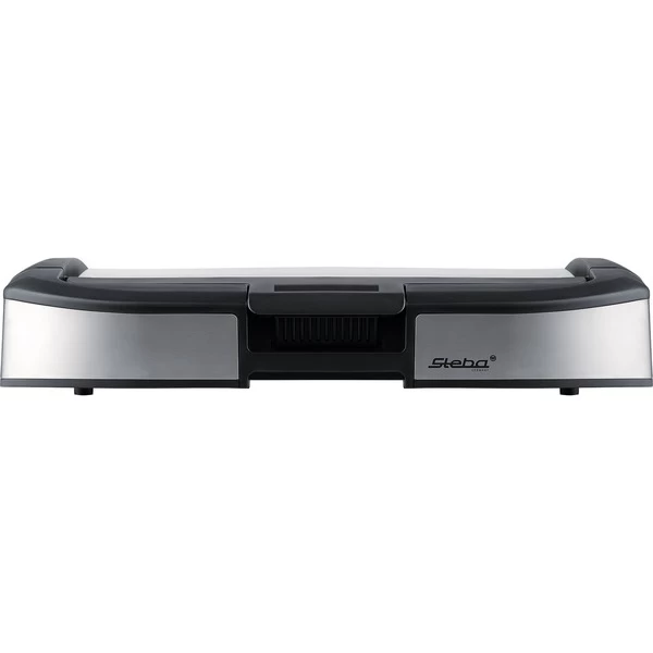 Der leistungsstarke, aber kompakte BBQ-Tischgrill VG 195 von Steba verfĂĽgt ĂĽber eine Alu-Druckguss-Grillplatte und einen transparenten Glasdeckel zur Versiegelung des saftigen Geschmacks. Durch den Glasdeckel werden besonders zarte Grillergebnisse erzielt, ohne Austrocknen bei gleichzeitiger Bildung einer appetitlichen Kruste. Eigengeschmack, Inhaltsstoffe und Form bleiben so bestmöglich erhalten. Die Platte verfĂĽgt ĂĽber einen gerippten Grillbereich, mit Grillmuster fĂĽr Steaks oder Fisch, einen glatten Bereich fĂĽr WĂĽrste, Bacon, MeeresfrĂĽchte, GemĂĽse und ähnliches, und eine „Hot Zone“. Die Gussplatte heizt sich dank des integrierten Heizelements sehr schnell auf. Das integrierte Thermostat und die Temperatur-Kontrollleuchte sorgen dafĂĽr, dass alle Speisen perfekt zubereitet werden. ĂśberschĂĽssiges Fett wird in eine Auffangschale geleitet. Die antihaftbeschichtete Grillfläche verhindert das Festkleben von Grillgut. Der BBQ-Tischgrill VG 195 lässt sich dank abnehmbarer Grillplatte komfortabel reinigen und mit seinen kompakten Abmessungen leicht aufbewahren. Art.-Nr.: 1755887