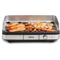 Der Tischgrill Maxi Plancha CB690 von Tefal für 10-12 Personen mit einer beeindruckenden Kochleistung wurde für leckere Mahlzeiten in geselliger Runde mit Freunden und Familie geschaffen. Die Leistung von 2.300 Watt sorgt für perfekt zubereitete, köstlich-saftige Speisen wie Fisch, Gemüse, asiatische Gerichte und Fleisch. Fünf Brat-Einstellungen bieten unendliche Möglichkeiten mit der richtigen Temperatur. Das Gerät kann sowohl drinnen für die täglichen Mahlzeiten wie beispielsweise Pancakes verwendet werden, als auch draußen mit dem abnehmbaren Windschutz. Dank der Antihaft-Versiegelung ist kein Ölzusatz nötig – für eine fettarme Zubereitung bei hervorragendem Geschmack. Außerdem lässt sich die Plancha mühelos reinigen. Saftauffangschale und Windschutz sind spülmaschinengeeignet. Der hochwertige Holzspatel eignet sich zum Wenden und Grillen.Art.-Nr.: 1631753