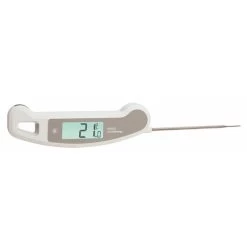 Das TFA Thermo Jack 30.1060 ist ein professionelles Klappthermometer und eignet sich ideal für die unkomplizierte Temperaturmessung in Ihrer Küche. Die Kontrolle der Kerntemperatur beim Grillen oder Braten, die temperaturgenaue Zubereitung von Leckereien aus Zucker und Schokolade, das Einkochen von Marmelade und die Überprüfung der Trinktemperatur von Wein und Getränken, das sind mögliche Einsatzbereiche des Thermo Jack Gourmet Thermometers. Nahrungsmittel jeglicher Art können mit dem handlichen Thermometer schnell, exakt und mühelos gemessen werden. Den Fühler ausklappen, einstechen und innerhalb von drei Sekunden liefert das Gerät die exakte Temperatur. Das beleuchtete Flip-Display dreht sich automatisch mit, so dass auch Linkshänder die Temperatur immer bestens ablesen können. Das Gerät ist strahlwassergeschützt und kann nach Gebrauch unter fließendem Wasser gereinigt werden. Die antibakterielle Beschichtung macht es besonders hygienisch.Art.-Nr.: 1858874