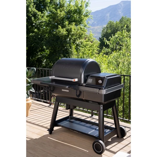 Der Ironwood von Traeger ist die fĂĽhrende Lösung fĂĽr das Grillen und Kochen im Freien. Dieser mächtige Grill kann das gesamte Team problemlos versorgen, eine mit Holz angefeuerte Pizza backen, Hamburger, Bratkartoffeln, 16 Ständer mit Spareribs, 8 Schweinebraten oder 8 HĂĽhnchen gleichzeitig mit einem zweistufigen, verstellbaren Grillrostsystem braten. Der WiFIRE-Controller, der den Grill ĂĽber die Traeger-App mit dem Smartphone (Android und iOS) verbindet, bietet eine ganz neue Art von Freiheit. Man kann den Super Smoke Modus einschalten, die Garraumtemperaturen ändern oder die Kerntemperatur der Speisen direkt vom Smartphone aus ĂĽberwachen. Man kann auch Rezepte mit der GrillGuide-Technologie von Traeger direkt auf den Grill herunterladen, damit der Grill den gesamten Kochprozess selbst steuern kann. Die Smart Combustion-Technologie sorgt fĂĽr konstante Kochtemperaturen, während die vollisolierte Doppelwandkonstruktion Temperaturschwankungen reduziert. Der Traeger FreeFlow Feuertop und der Super Smoke Modus sorgen dafĂĽr, dass frischer Rauch ĂĽber die Speisen strömt, um den optimalen Holzfeuergeschmack zu erzeugen. Grillen, Räuchern, Backen, Rösten, Schmoren, BBQ und mehr – alles auf einem Grill. Die P.A.L Pop-And-Lock-Zubehörschiene ermöglicht die zusätzliche Anordnung von Regalen, Werkzeughaken, Vorratsbehältern, Rollenhaltern und mehr, je nach persönlichem Kochstil. Der EZ-Clean Fett- und Aschebehälter sammelt Tropfen und Pellet-Asche in einem groĂźen Behälter, der leicht zugänglich ist und sich schnell und bequem reinigen lässt. Der Ironwood ist auĂźerdem mit einem Pellet-FĂĽllstandssensor ausgestattet.Art.-Nr.: 1888323
