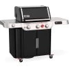 Der komplett neu designte Weber Genesis EPX-435 verfügt über eine größere und heißere Sear Zone für mehrere Steaks und einen erweiterbaren oberen Grillrost, so dass Hauptgericht und alle Beilagen gleichzeitig gegrillt und serviert werden können. Wenn das Grillgut fertig ist, kann es ganz einfach auf dem großen Vorbereitungs- und Serviertisch abgelegt werden. Auch Deckel und Griff wurden überarbeitet und wirken jetzt kantiger und moderner. Die Bedienfront und die Seitentische wurden vorne leicht abgeschrägt und sind noch besser bedienbar. Auch ein Seitenschrank ist jetzt an der linken Seite integriert. Mit dem neuen WEBER CRAFTED Gourmet BBQ System kann man alles grillen, was man sich vorstellen kann. Man ersetzt einfach den rechten Grillrost durch das WEBER CRAFTED Basis-Rahmen-Set, setzt das Grillzubehör in den Rahmen und fängt an zu grillen. Das separat erhältliche Grillzubehör lässt sich beliebig austauschen und ist daher unendlich vielseitig. Das Rahmen-Set ist für die Verwendung der CRAFTED Grill-Einsätze erforderlich und wird unter dem rechten Grillrost verstaut, wenn der Grill nicht verwendet wird. Der Genesis EPX-435 verfügt über vier Haupt- und einen Sear Zone-Brenner, die man alle unabhängig voneinander stufenlos regulieren kann. Um die Temperatur gut im Blick behalten zu können, ist jetzt eine digitale Temperaturanzeige in den Seitentisch integriert. Mit der smarten WEBER CONNECT Technologie erhält man Temperaturwarnungen in Echtzeit aufs Smartphone, damit alles jedes Mal perfekt gelingt. Auf dem zusätzlichen Seitenbrenner kann man Beilagen zubereiten, Wasser kochen oder Soßen erwärmen. Die Zündung erfolgt praktisch über ein elektronisches Zündsystem. Das 2022er Modell bietet außerdem die in die Griffe integrierte NIGHT VISION Beleuchtung der Grillfläche, das Pull & Clean Fettauffangsystem mit Fettabstreifer sowie eine neue und verbesserte ausziehbare Fettauffangwanne.Art.-Nr.: 1814523