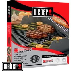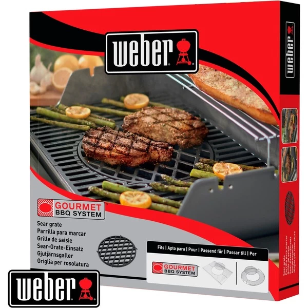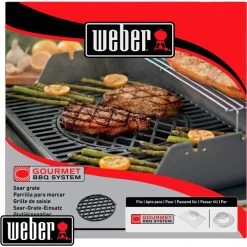 Der Grillrost Weber Sear Grate 8834 mit 30cm Ø eignet sich für Weber Grills mit Gourmet BBQ System Grillrost und bietet individuelle Zubereitungsmöglichkeiten. Der porzellanemaillierte Grillrost aus Gusseisen mit dem typischen Rautenmuster gewährleistet eine gleichmäßige Wärmeverteilung, sorgt für ein professionelles Grillmuster und schließt den Fleischsaft und das Aroma im Grillgut ein.Art.-Nr.: 1014996