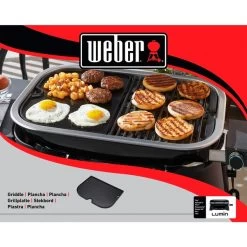 Die Weber Grillplatte 6612 aus porzellanemailliertem Gusseisen passt für den Weber Lumin Elektrogrill. Mit dieser Grillplatte kann man noch mehr köstliche Gerichte zubereiten. Sie verwandelt im Handumdrehen die Oberfläche des Lumin Grills in eine Plancha, so dass man morgens Pfannkuchen und Rührei und abends Gemüse und Fischgerichte zaubern kann. Dank der erhöhten Kanten fällt kein Grillgut herunter. Das Gusseisen verteilt die Wärme optimal, sorgt für gleichmäßig gegartes Grillgut und verhindert, dass etwas festklebt. Nach dem Essen lässt sie sich ganz schnell mit Wasser und Seife reinigen. Sie ersetzt die Hälfte des Grillrostes, hat zwei integrierte Fettablauföffnungen und eine Grifföffnung.Art.-Nr.: 1875589