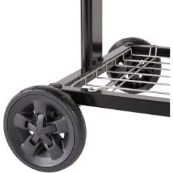 | Details | Rollwagen mit frei zugänglichem Stauraum, 2 drehbare Lenkrollen mit Stoppfunktion, 2 Allwetter-Gummiräder (20cm), Gitterablage, Edelstahl-Korbschublade | ||