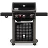Der Weber Performer Deluxe GBS ist auf einem stabilen Grillwagen befestigt mit zwei großen, bruch- und wetterfesten Rädern und zwei Lenkrollen mit Stoppfunktion. Er besitzt eine große Arbeitsfläche, die so beschichtet ist, dass sie besonders widerstandsfähig und langlebig ist. In den Deckel ist ein Themometer integriert, um jederzeit die Temperatur überprüfen zu können. Der Timer des Weber Performer Deluxe GBS ist herausnehmbar und lässt sich so herumtragen, er verfügt auch über eine praktische Hintergrundbeleuchtung. Das elektrische Gaszündsystem gestattet es dem Benutzer, den Grill mit einem Knopfdruck anzuzünden. Um den Deckel des Grills ablegen zu können, ist ein praktischer Deckelhalter eingebaut. Die Asche kann man leicht entnehmen und entsorgen, da der Aschetopf extra groß bemessen wurde. Zum Schutz ist der Deckelgriff mit einem Hitzeschutz versehen. Die Kohle lässt sich gut in dem Kohlevorratbehälter lagern, welcher wettergeschützt ist und sich seitlich herausklappen lässt.Art.-Nr.: 1249245