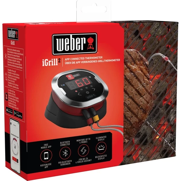 Dieses vielseitige Thermometer verbindet sich via Bluetooth mit der kostenlosen Weber iGrill-App und misst sowohl die Kern- als auch die Temperatur in der Grillkammer. Man hat die freie Wahl – voreingestellte Werte nutzen oder eigene Werte festlegen. Das Thermometer enthält 2 Messfühler und ist für bis zu vier Fühler geeignet. Das Display auf dem Thermometer zeigt die aktuelle Temperatur des ausgewählten Fühlers an, sodass man den Garpunkt auf einen Blick kontrollieren kann. Die kostenlose Weber iGrill-App liefert umfangreiche Informationen zum Garprozess und hält vielseitige Funktionen und Einstellungsmöglichkeiten bereit.Art.-Nr.: 1303166