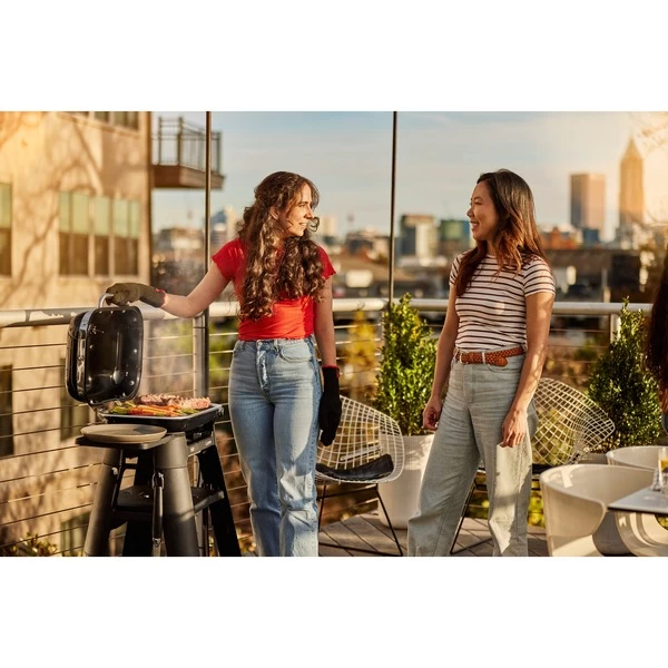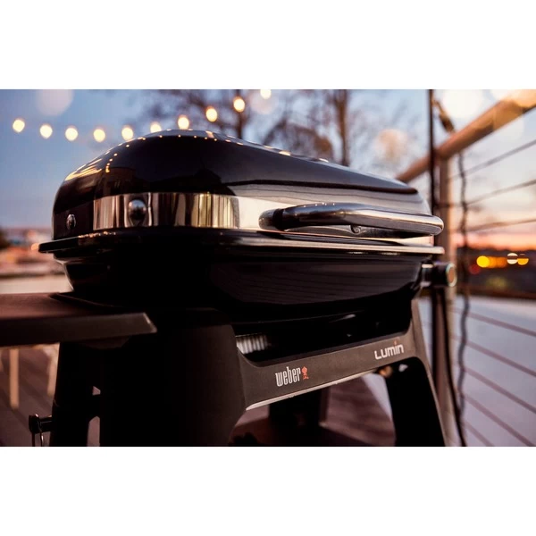 Der Elektrogrill Lumin „Black“ von Weber bringt mit hoher Hitze und groĂźer Vielseitigkeit das urbane Grillen im Freien auf ein neues Niveau. Der multifunktionale Elektrogrill erreicht mit 2.200 Watt Temperaturen ĂĽber 315°C fĂĽr scharfes Anbraten und köstliche Grillmuster, während die Räucherfunktion den Grillgeschmack weiter verstärkt. Mit den verschiedenen Grilloptionen kann man gefrorenes Grillgut auftauen, Steaks scharf anbraten, SpieĂźe räuchern, GemĂĽse dämpfen oder Beilagen kochen. AnschlieĂźend hält der Lumin die Speisen bis zum Servieren warm und bietet bei geöffnetem Deckel ein BĂĽfett zur Selbstbedienung. Der intuitiv markierte Bedienknopf macht die Auswahl der Grill-, Dampf-, Räucher- und Aufwärmfunktionen kinderleicht. Das emaillierte Stahlgehäuse und die von vorne zugängliche Fettauffangschale lassen sich nach dem Grillen problemlos reinigen. Der moderne, praktische Lumin mit seinem schwarzen porzellanemailliertem Gehäuse ist ein Hingucker auf jedem Balkon oder Terrasse. Mit seinem kompakten, platzsparenden Design ist der Weber Lumin auĂźerdem leicht zu verstauen und fĂĽr die nächste Grillparty im Handumdrehen wieder aufgestellt. Mit dem Stand mit Seitentisch ist das Grillen mit dem Lumin noch bequemer. Durch das zusammenklappbare Design lässt er sich einfach aufstellen, zusammenklappen und in einem Schrank oder in der Garage aufbewahren. Der Seitentisch bietet zusätzlichen Platz zum Zubereiten und Servieren und dank der vier integrierten Haken ist das Grillwerkzeug immer griffbereit.Art.-Nr.: 1875515